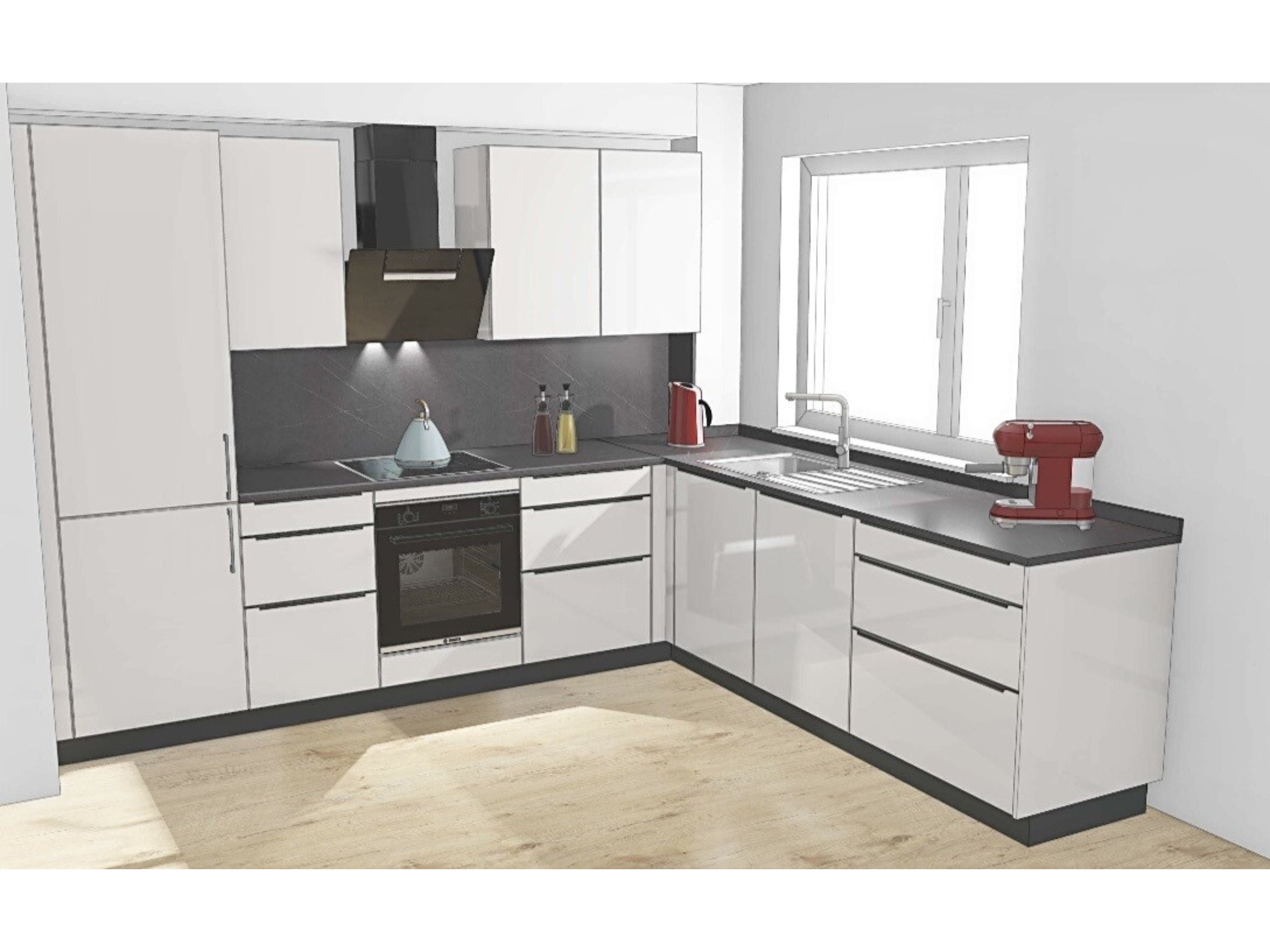 - moderne, voll ausgestattete Einbauküche