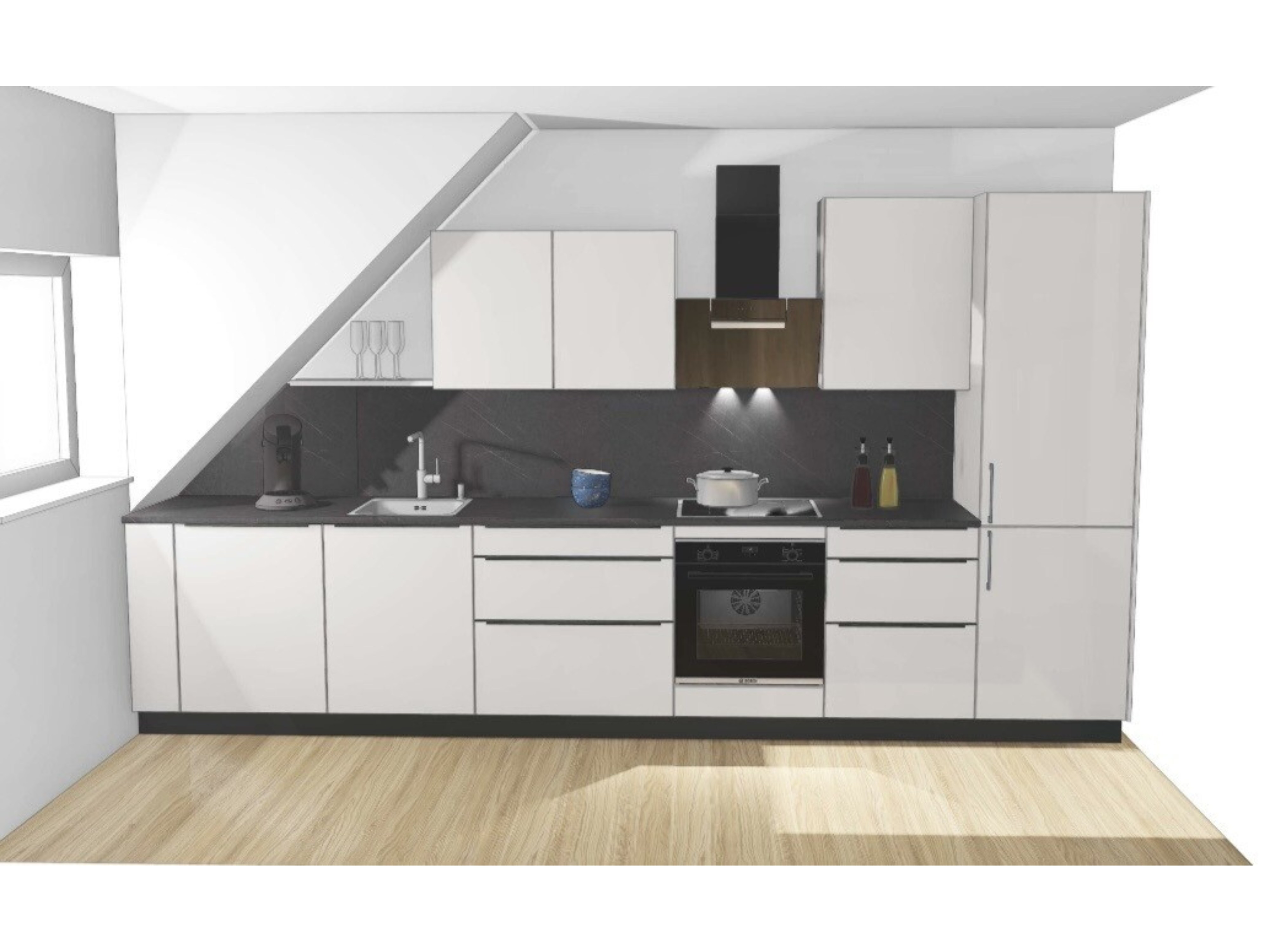 - moderne, voll ausgestattete Einbauküche